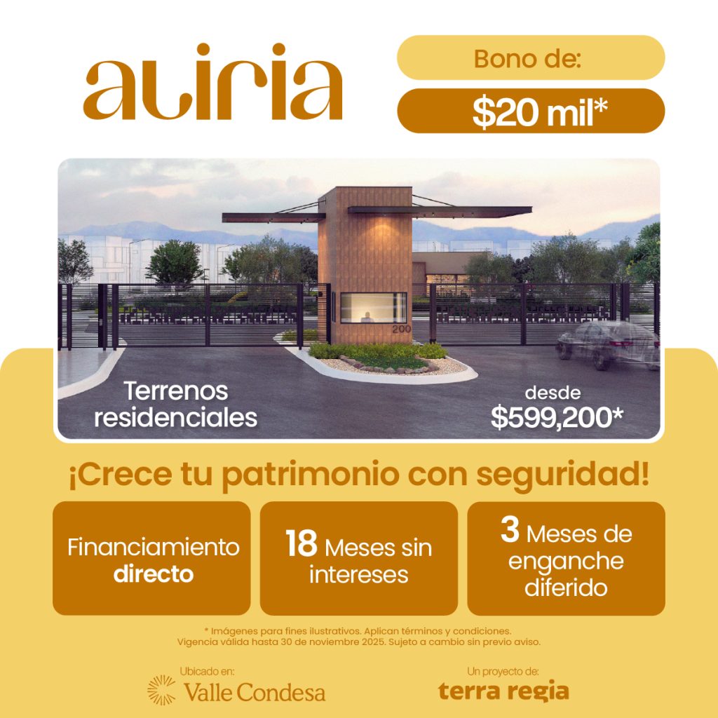 Aliria Residencial está ubicado en Valle Condesa, un proyecto integrador de los municipios de Guadalupe, Juárez y Cadereyta. En el corazón de este lugar se encuentra el Gran Parque Condesa y la UANL Campus Juárez.